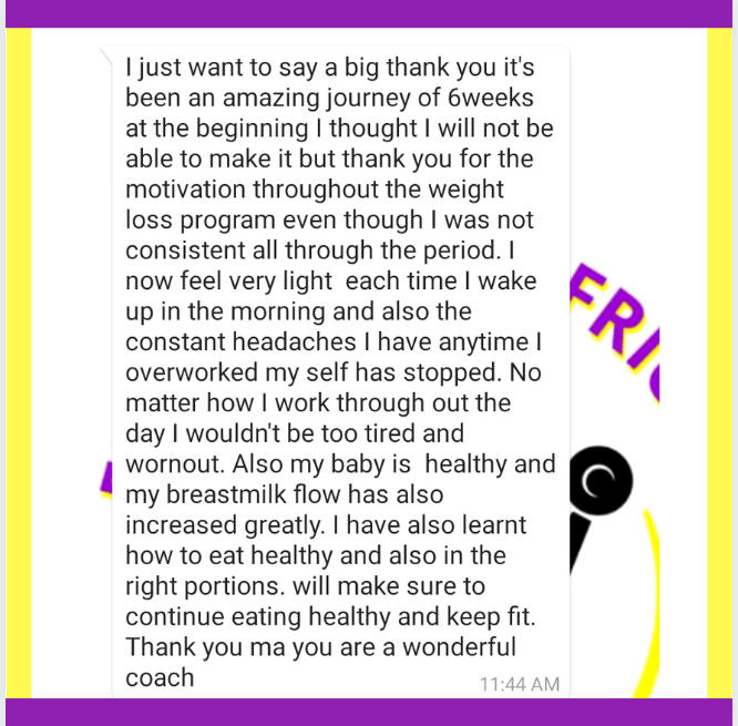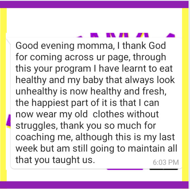 Founder of Fit Momma Africa aka Da Coach with Results.My job is to help mums discover the power of natural foods to achieve their health and body goals.I have coached and worked with mums across Nigeria who have used my meal plans & programs to burn fat, reverse health issues and are living healthier and happier lives.