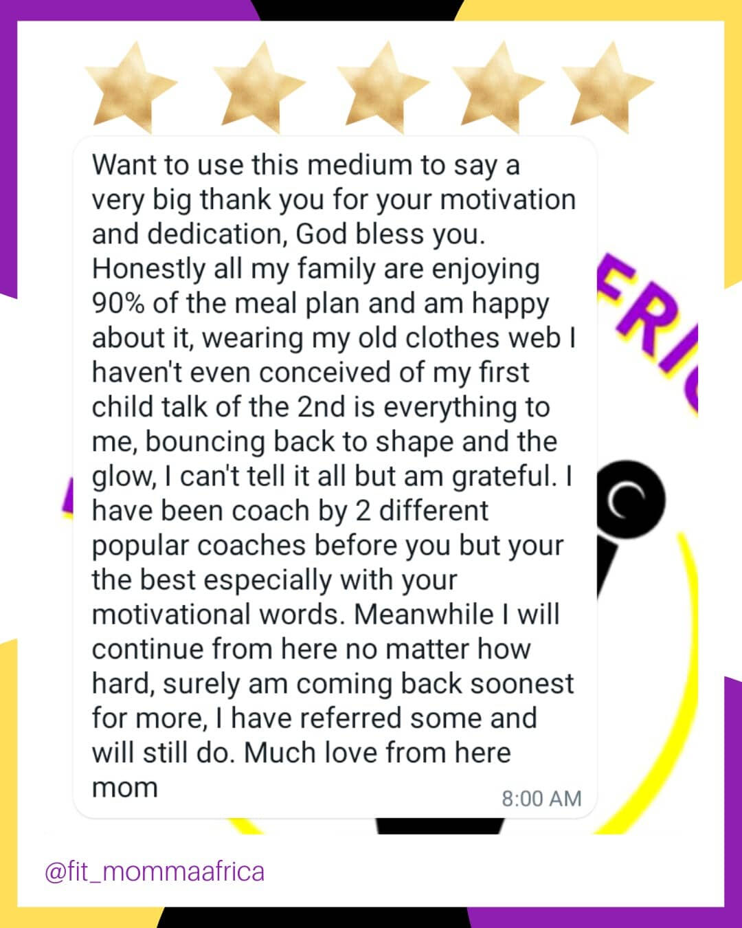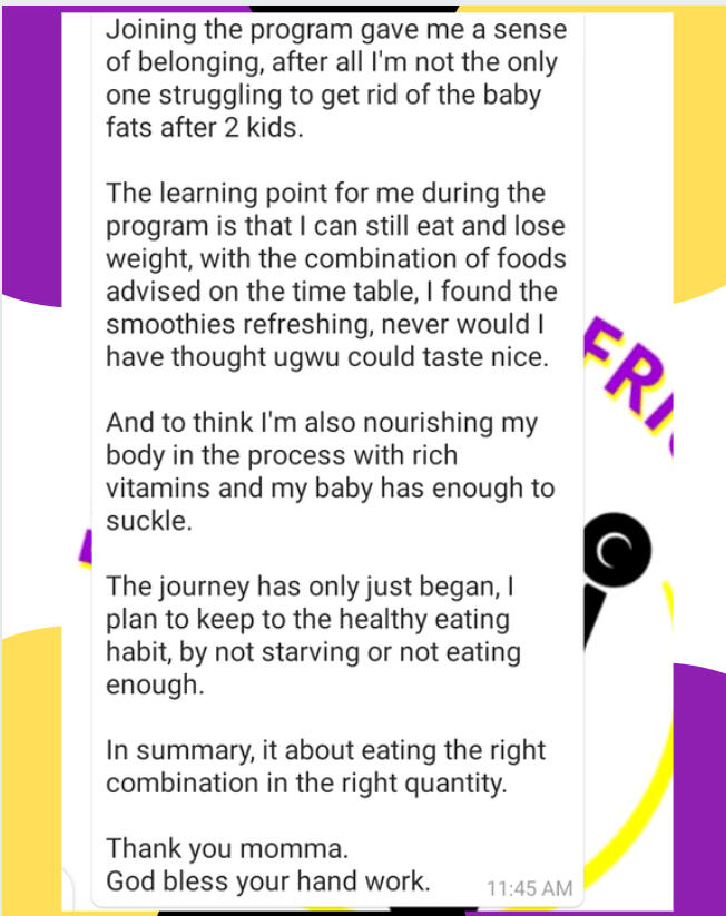 Founder of Fit Momma Africa aka Da Coach with Results.My job is to help mums discover the power of natural foods to achieve their health and body goals.I have coached and worked with mums across Nigeria who have used my meal plans & programs to burn fat, reverse health issues and are living healthier and happier lives.